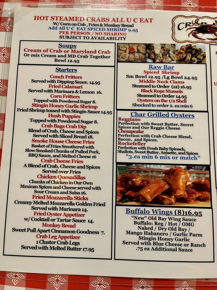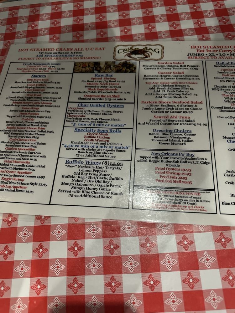 Introducing "Crab Bag", a seafood, sandwich, and barbecue spot located in Ocean City, MD. Offering a range of amenities like delivery, takeout, and wheelchair accessibility, "Crab Bag" ensures a convenient dining experience. With a diverse menu featuring appetizers like golden fried calamari and clam chowder, as well as fresh salads and lettuce wraps, there is something for everyone to enjoy. The standout dishes include the Eastern Shore Seafood Salad and the Smoked Fish Appetizer Platter. The casual ambiance, full bar, and happy hour specials make it a great spot for groups and families. Overall, "Crab Bag" promises a satisfying dining experience with delicious seafood options and a welcoming atmosphere.